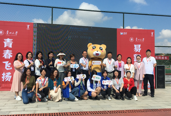 贵州大学学生处冉龙彪副处长与迎新工作人员合影