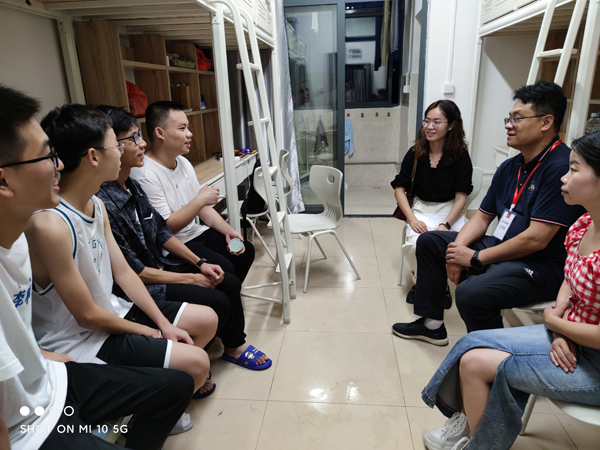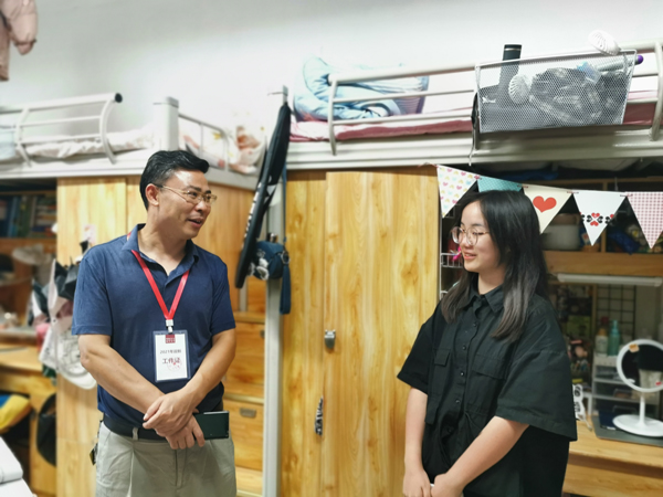 9月9日晚上,阳明学院党委书记周昌洪、院长张寒松、正处级组织员叶明、副书记谢佳、副院长胡玉群和全体辅导员走访了新生寝室,看望了解新生住宿情况,与学生亲切交流,听取学生的意见建议,勉励新同学适应新的学习生活环境。