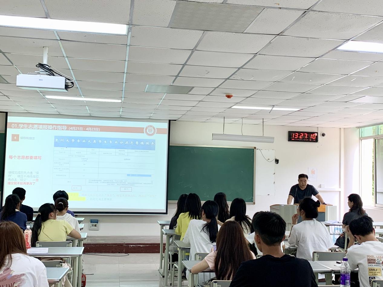 教务办主任付兵随后就专业大类分流进行了讲解,强调专业分流是学生基于个人兴趣和职业规划选择专业方向的过程,对于学生的未来发展至关重要,并为同学们详细讲解了学生志愿填报的操作指南和注意事项。