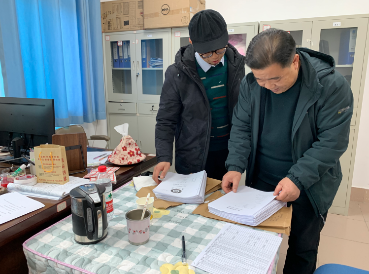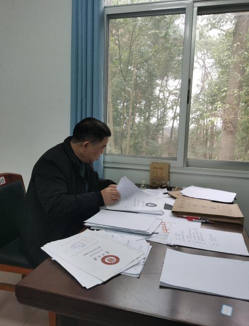 阳明学院教务办主任付兵核对试卷装档材料