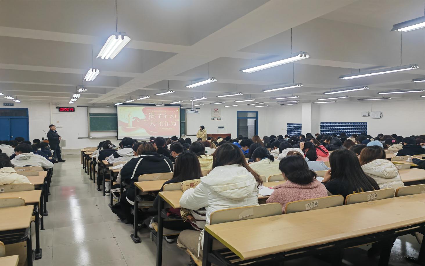 为深入学习贯彻党的二十届三中全会精神,提升青年学生群体的思想政治素质,引导广大青年在学思践悟中凝聚奋进力量,2024年11月27日晚,阳明学院学工党支部联合马克思主义青年学习社在南校区致知楼502教室开展“传达全会精神,共绘现代化蓝图”为主题的“理论宣传二人讲”宣讲会。会议由阳明学院团委副书记史萌老师主持,青马学社成员及学院学生共计200余人参加。
