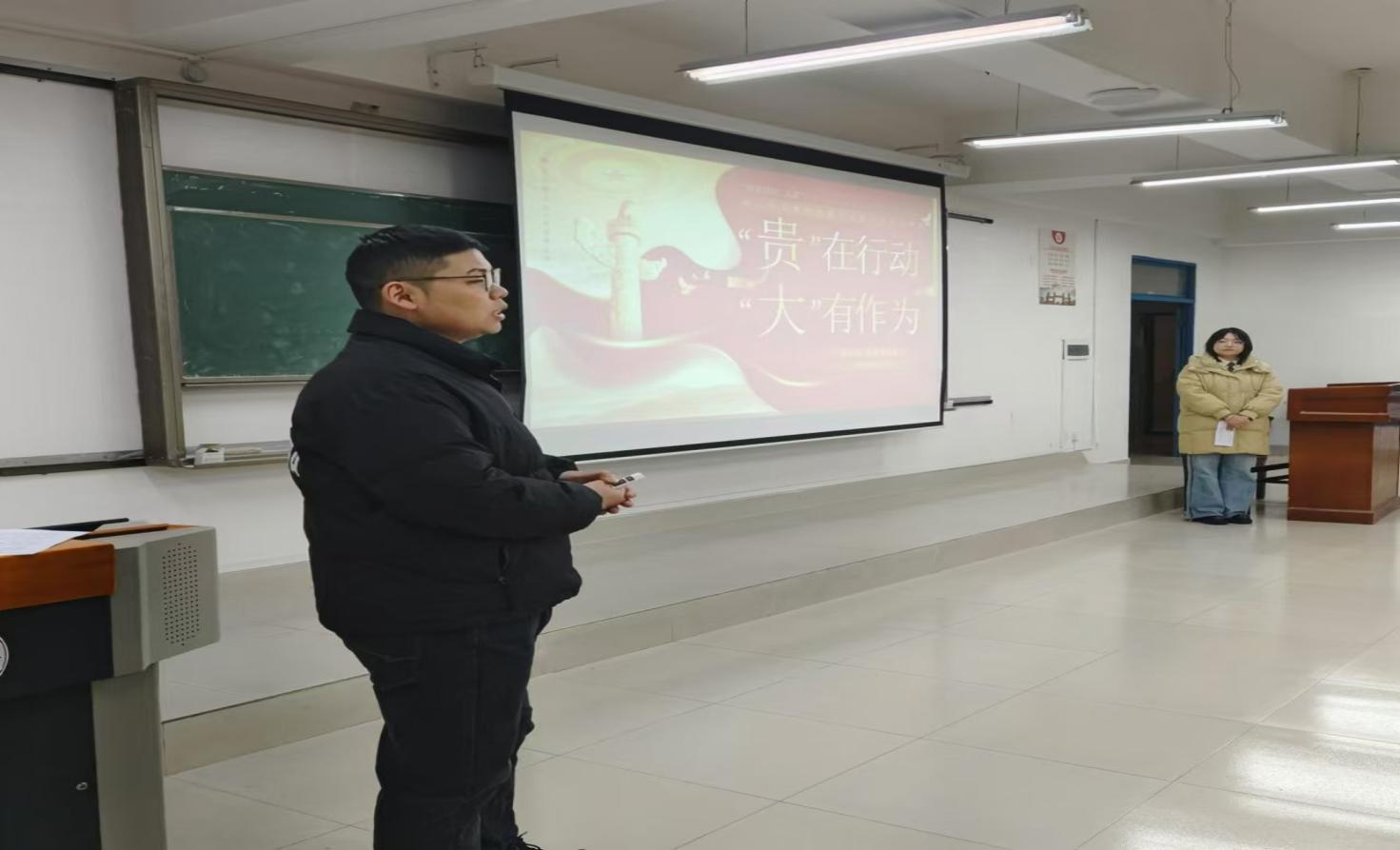 阳明学院学工党支部组织委员史萌老师以“‘贵’在行动、‘大’有作为”为主题,紧紧围绕学习领会习近平总书记重要讲话和全会精神,聚焦《决定》提出的“六个坚持”,系统地向同学们阐述了“六个坚持”的精神实质,结合贵州省情深入学习党的二十届三中全会精神,深刻认识进一步全面深化改革的重大原则。史萌老师表示,贵州“三者”定位和“五期”方位在中国式现代化贵州实践新篇章中具有重要的战略定位,同时鼓励同学们不断突破自我、超越自我,用自己的实际行动展现‘贵’在行动、‘大’有作为”的深刻实践。