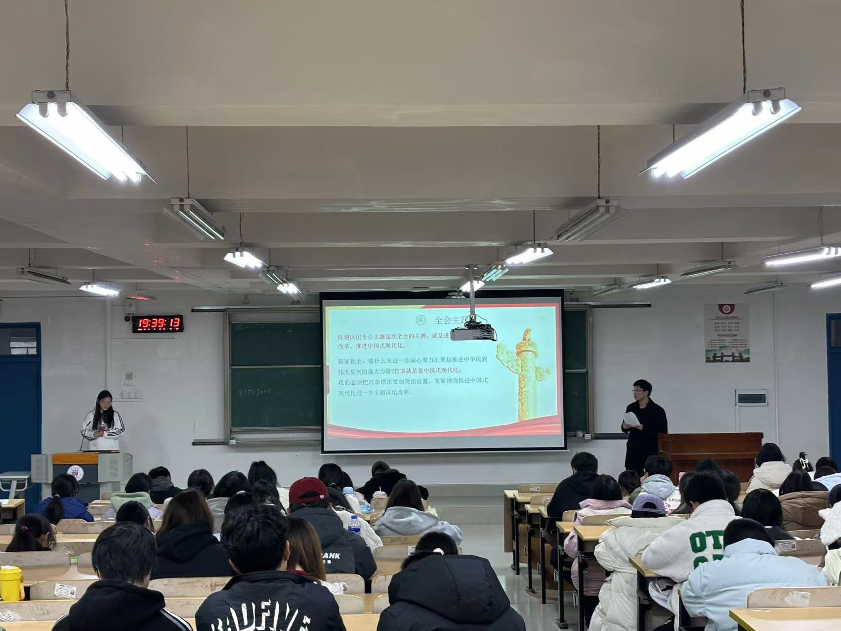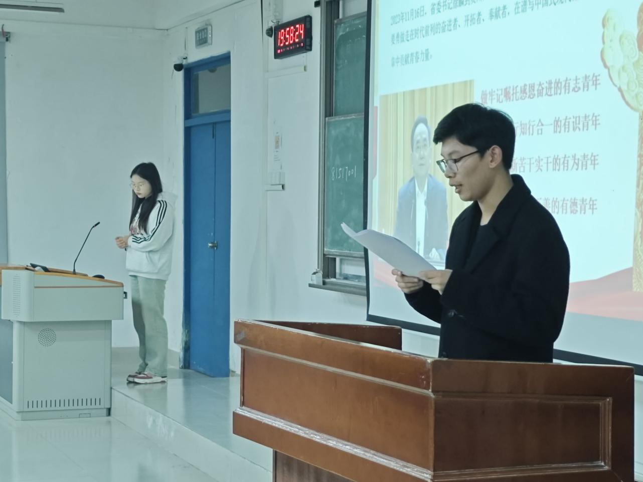 为深入学习宣传贯彻党的二十届三中全会精神,纪念“一二·九”运动89周年,引导新时代青年传承弘扬爱国主义光荣传统2024年12月5日晚,阳明学院学工党支部与马克思主义青年学习社在南校区致知楼502教室开展“领悟全会精神,共筑复兴梦想”为主题的理论宣传二人讲宣讲会。此次活动旨在引导青年学生深入学习党的创新理论成果,激发思想活力,为实现中华民族的伟大复兴贡献青春力量。