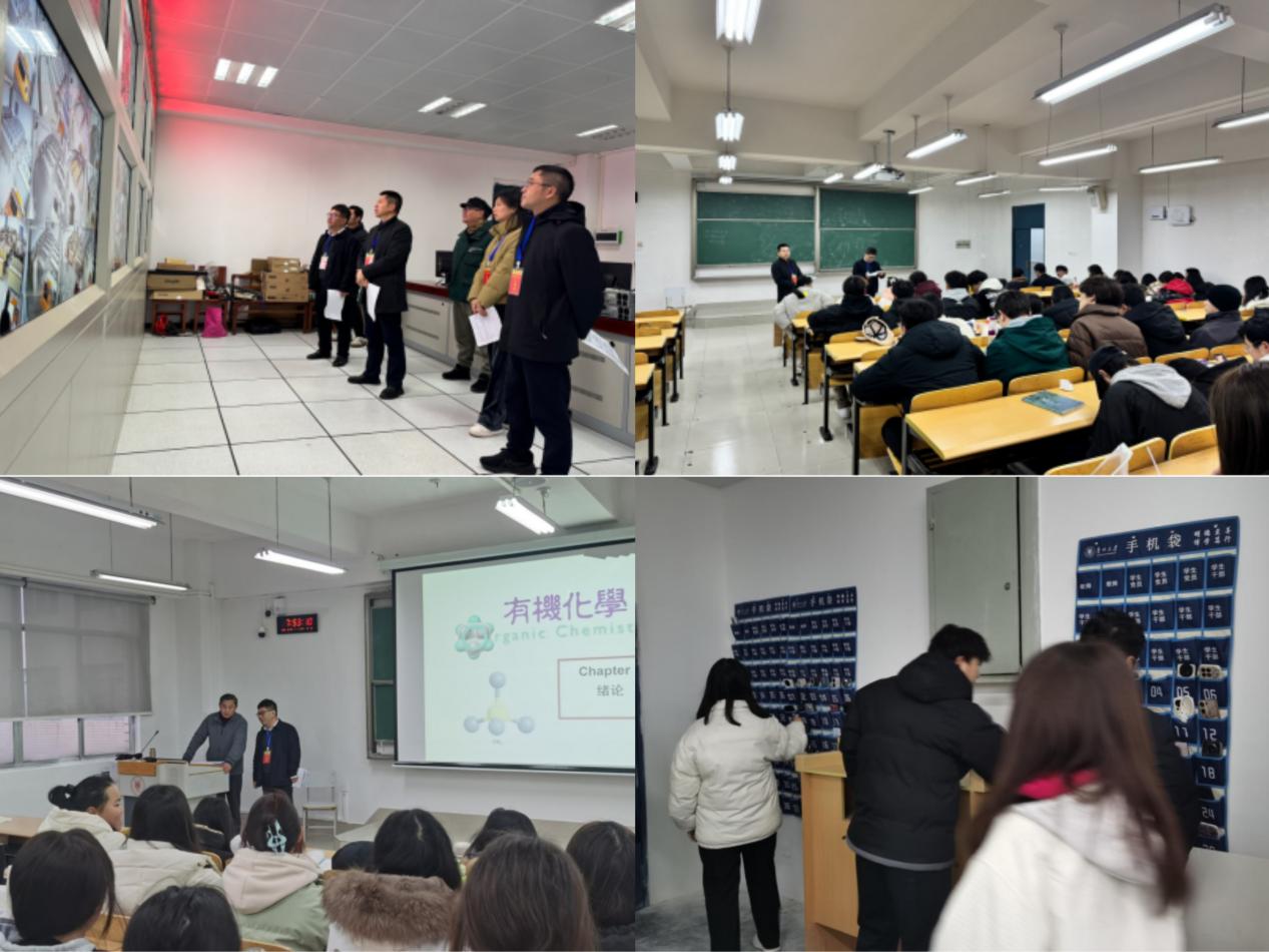 2月24日开学第一天,清晨7:30,陈祥盛副校长、陈艳波副校长及教务处领导一行莅临南校区教学楼,实地检查教学工作开展情况。他们首先在致知楼监控大屏前查看了整体教学秩序,随后深入各教室,与任课老师亲切交流,并向学生强调课堂纪律要求。学生们主动落座教室前三排,并将手机放入指定手机袋,展现出良好的课堂风貌。
