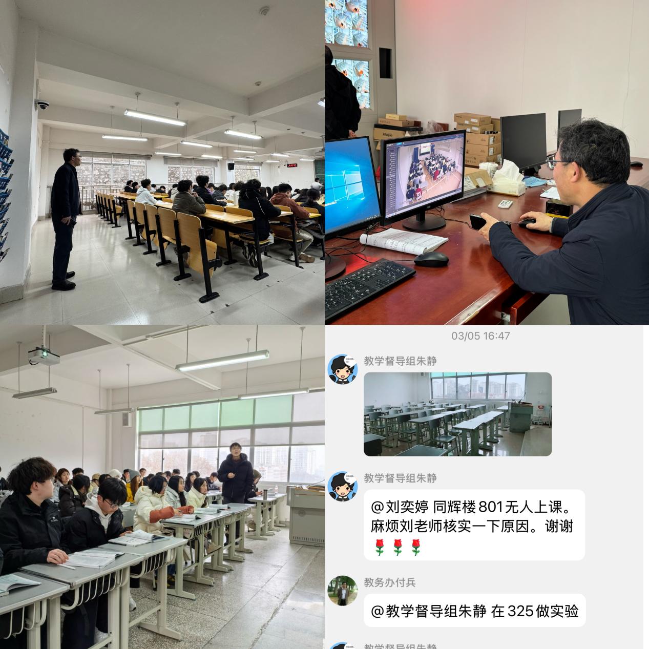 同时,学院严格按照学校要求落实常态化教学监督机制。学院党委书记周昌洪和学院院长段忠贤通过巡课系统线上听课,及时反馈课堂教学与学生学习状态;学院副院长胡玉群则深入课堂现场听课,课后与任课教师交流,对授课方式、师生互动等多方面提出了具体意见和建议。