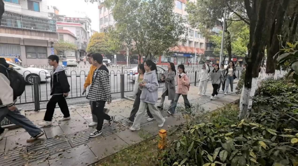 同学们以班级为单位,徒步三公里前往花溪公园,队伍井然有序,沿途倡导文明祭扫、绿色出行。行走过程中,大家神情庄重,在脚步丈量中感悟英烈精神,展现新时代青年的责任担当。