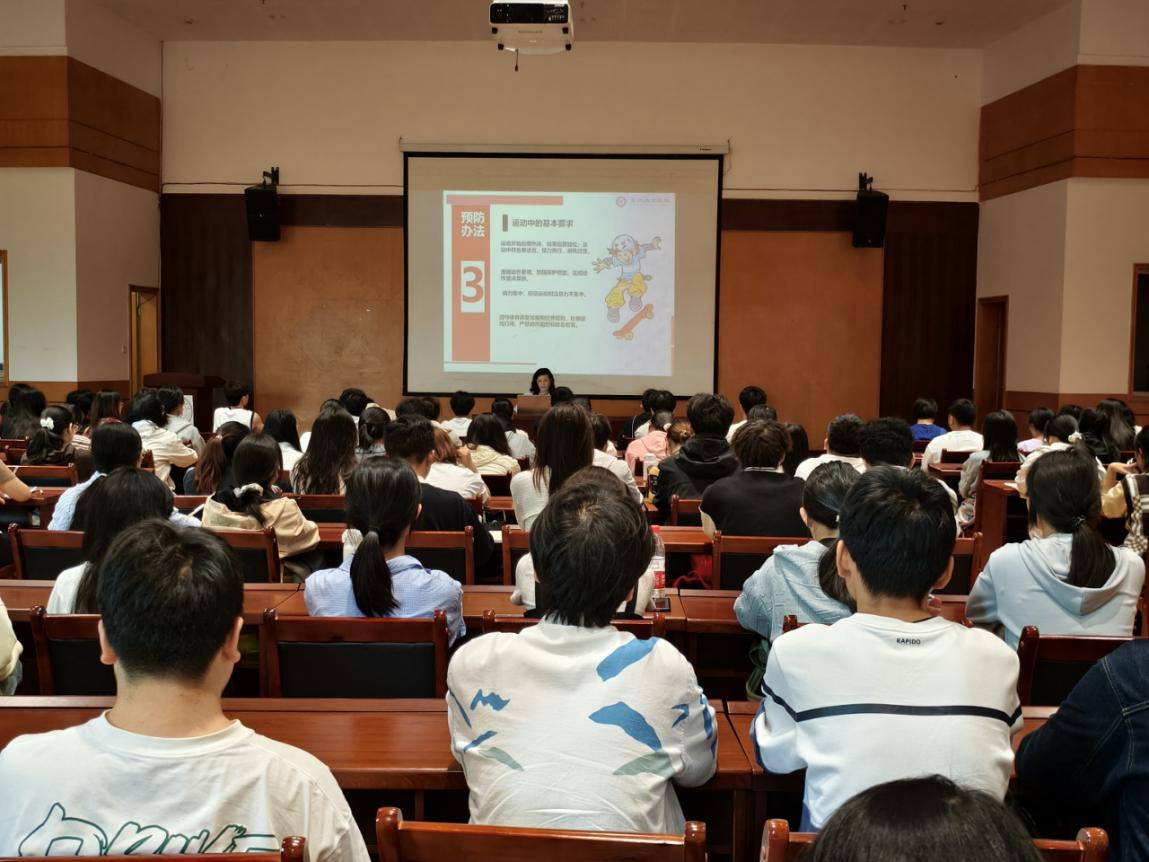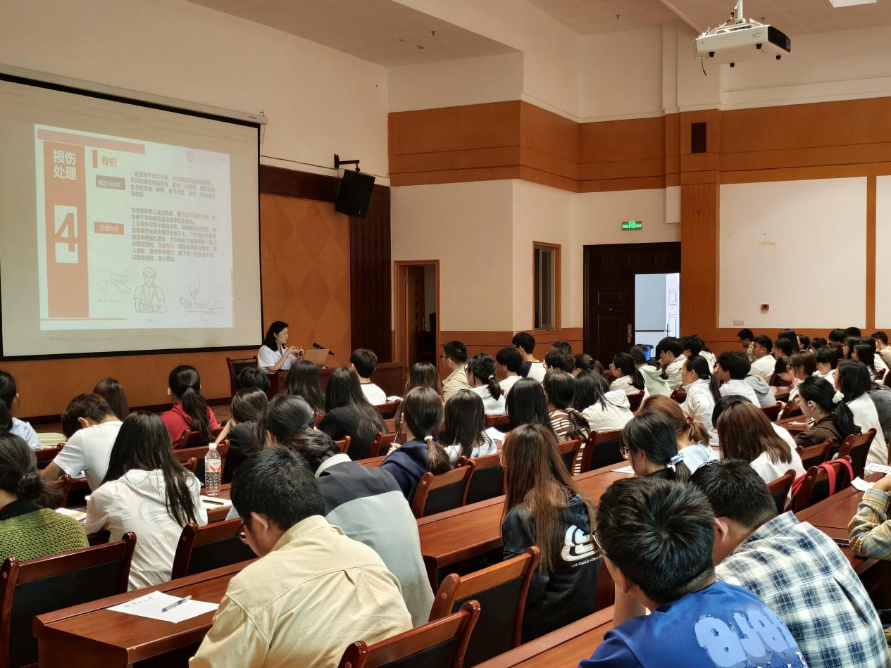 培训伊始,雷蕾院长以“运动性损伤预防及处理”为主题,为学生们带来了一堂别开生面的安全教育课程。她凭借丰富的临床经验,深入浅出地剖析了运动中常见的擦伤、挫伤、关节扭伤、肌肉痉挛等损伤类型及其成因,并亲自示范了科学有效的应急处理方法。雷院长着重指出,预防运动损伤的关键在于充分做好热身准备、熟练掌握运动技巧、严格遵守运动规则,并在意外发生时能够迅速采取正确的急救措施。