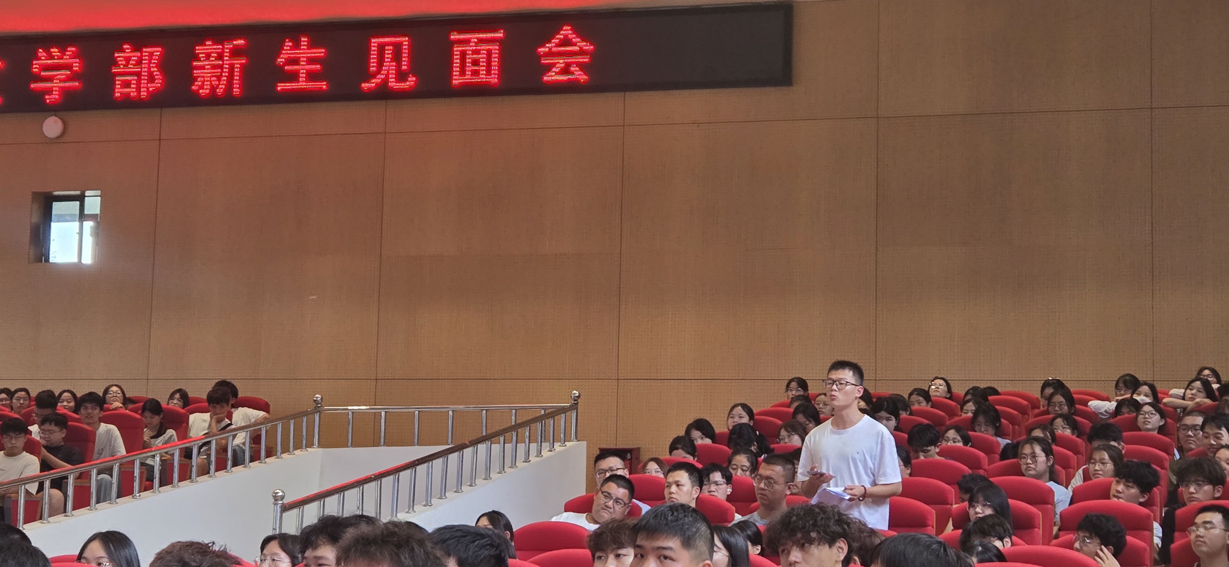 见面会临近尾声,胡副院长致辞勉励新生“明德至善,博学笃行”,随后就同学们提出的大学生竞赛、大学生应征入伍等提问逐一作答,现场掌声频起。
