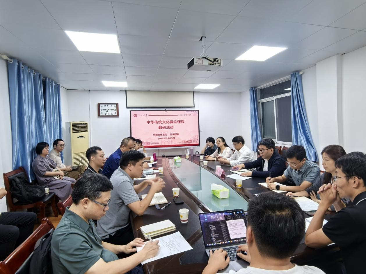 为深化课程创新改革、夯实教学质量根基,2025年9月29日晚,中国文化书院与阳明学院在南校区同渊楼201会议室联合组织开展中国传统文化概论课程教研活动。副校长陈艳波教授莅临指导。阳明学院院长段忠贤主持会议,学院副院长胡玉群、教学督导组李炳林老师及课程全体授课教师参会。会议围绕课程考核优化、实践教学形式创新及教学资源整合三大核心议题展开深入研讨。