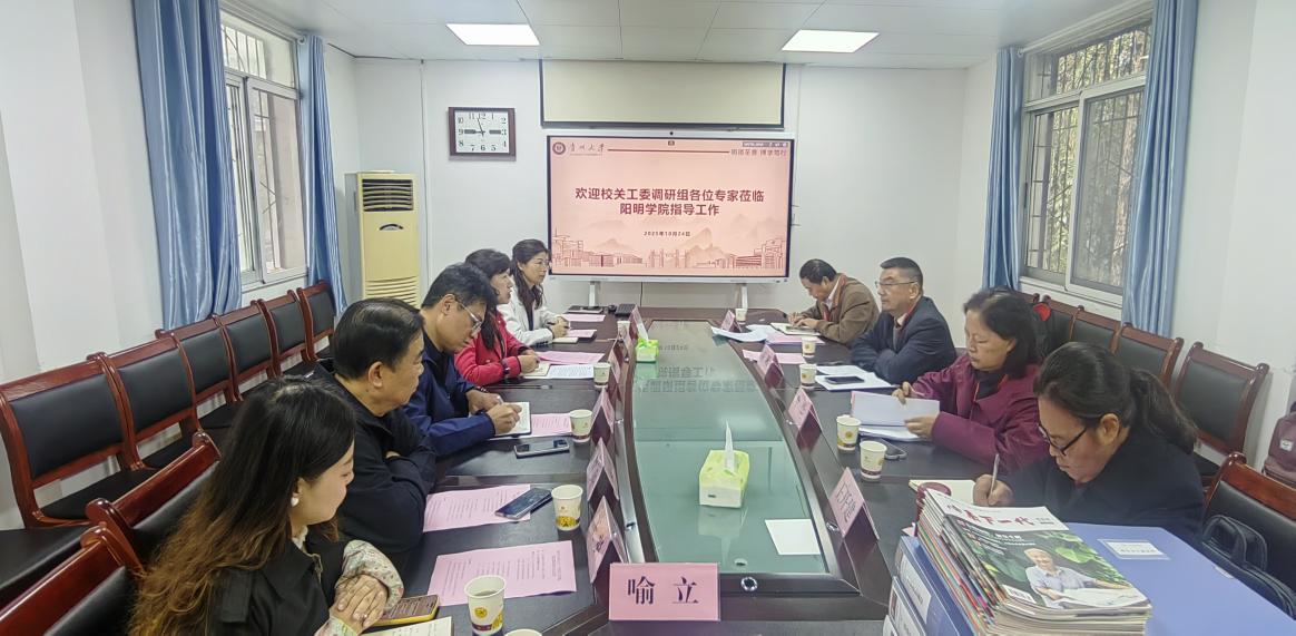 2025年10月24日上午,贵州大学关心下一代工作委员会调研工作组赴阳明学院检查“五好”关工委创建工作情况。校关工委副主任王巩、副秘书长董峰林和成员牟兰、王开建以及阳明学院班子成员、相关科室负责人参加会议。