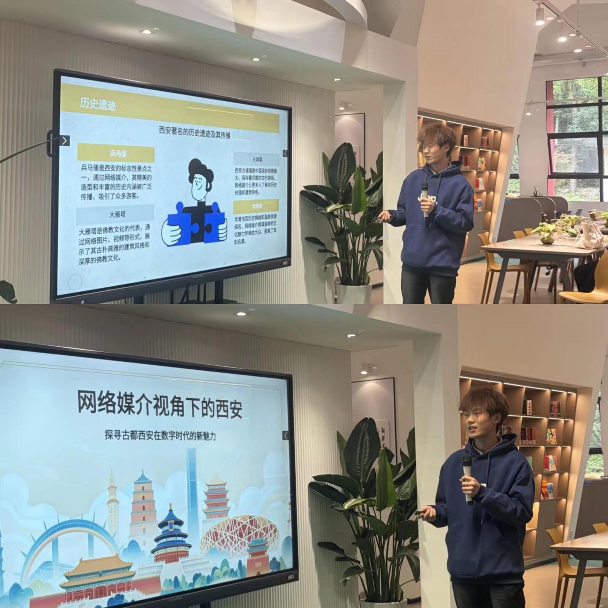 分享会后,同学们感触良多。来自重庆组的刘罗语韬同学分享道:“为了准备分享,我重新‘阅读’了家乡。当我站在洪崖洞对面,看着灯光亮起,听着长江涛声,我突然理解了刘老师说的‘城市本身就是一个巨大的媒介’。它通过地形、建筑和市井生活,每天都在向人们传递着它独特的性格与故事。这个视角的转变,让我对家乡的爱变得更深沉、更理性了。”来自西安组的雷悦华同学则表示:“在溪山书房这个环境里讲述千年古都,有种奇妙的时空交错感。梳理西安的脉络让我明白,一座城市真正的魅力不在于它拥有多少遗址,而在于这些历史记忆如何被激活,并融入当代人的生活中。这门课让我重新审视自己的专业学习规划,或许未来,我可以成为那个连接过去与未来的人。”这场分享会,让同学们不仅解读了多元的城市密码,更在心中埋下了关于未来与责任的种子。