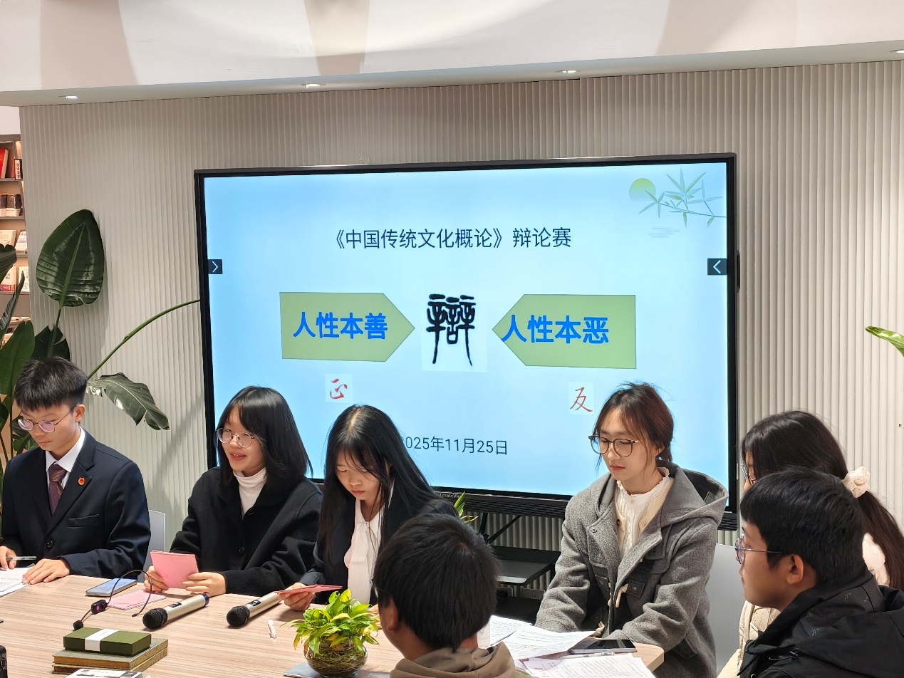 2025年11月25日10点10分,一场围绕“人性本原”的辩论赛在贵州大学溪山书房精彩上演。作为《中国传统文化概论》通识实践课程的重要环节,此次辩论赛由王胜军教授策划,在善与恶的千年对话中探索人性本原,为青年学子搭建理性表达与思想碰撞的青春舞台。