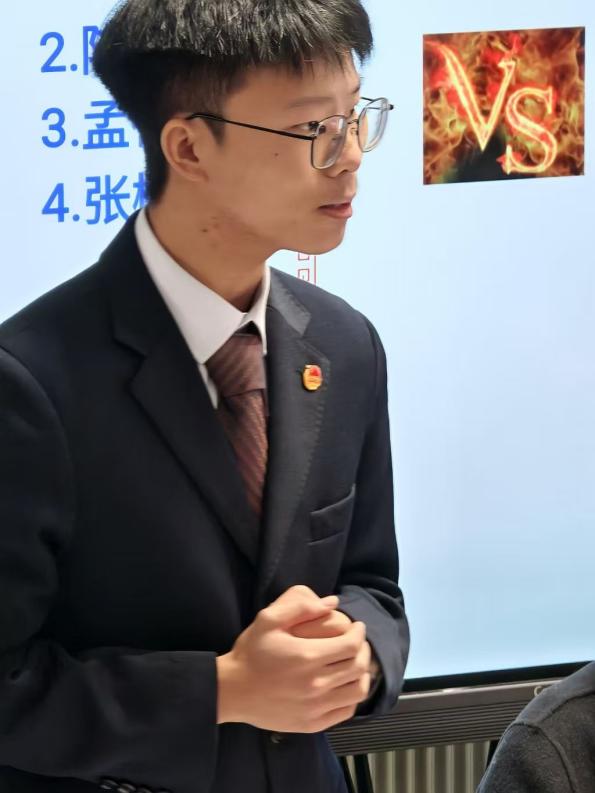 在质询与盘问环节,辩手们步步紧逼、环环相扣。反方二辩以“婴儿本能”为例质疑善的先天性,正方三辩则通过“共情行为”论证人性中的利他倾向。正反方三辩的盘问亦逻辑严密,言辞犀利。双方在打断与回应中不断深化辩题,展现出敏捷的思维与沉稳的台风。