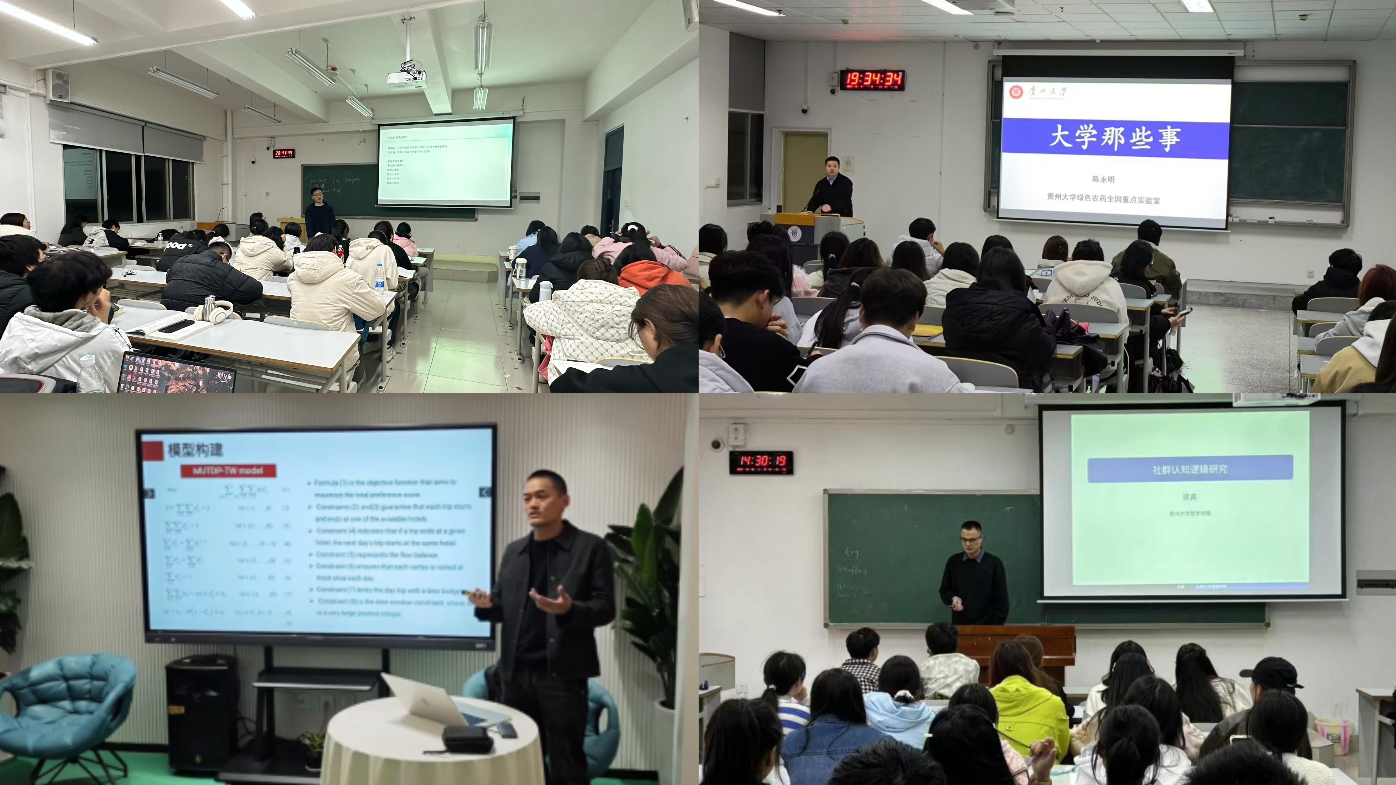 学业导师们精心策划了一系列名师专家讲座,为学生们提供专业指导并拓展他们的学术视野。王洪老师特邀历史与民族文化学院的彭涛老师为历史2402班的学生进行专业辅导。吴黔凤老师则邀请管理学院的钟健老师为文产2401班学业带来关于城市个性化旅游线路设计的专题讲座。李诚和于兴林老师邀请了陈永明特聘教授为植产2408班学生举行《大学那些事》讲座。此外,哲学学院为2024级新生推出了“学哲学 爱智慧 开启人生新未来”系列讲座,内容涵盖从社群认知逻辑到中国哲学源流等广泛议题。梁真老师、邓国元老师等专家学者主讲,旨在启蒙新生智慧,增进新生对哲学学科的了解,坚定专业信念,培养学术兴趣。